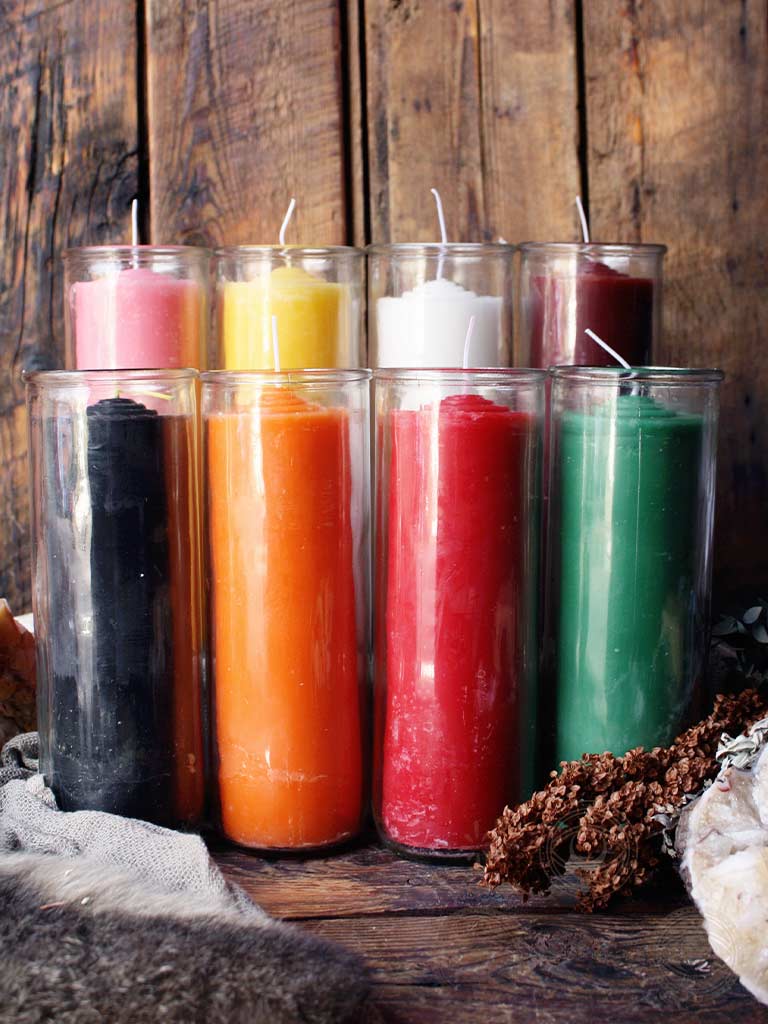 A spiritual candle is traditionally made from only natural waxes infused with sacred herbs. The choice of wax contributes to the overall quality of the candle, ensuring that it burns cleanly and releases fragrances selected for their association with specific deities or intentions.