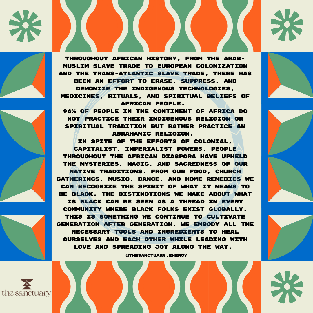 The purpose of this circle is to provide a safe space for Black folks to connect in community about Indigenous African spirituality and re-member the ways in which we hold collective power through the shared experiences of radical cultural preservation throughout the Diaspora.